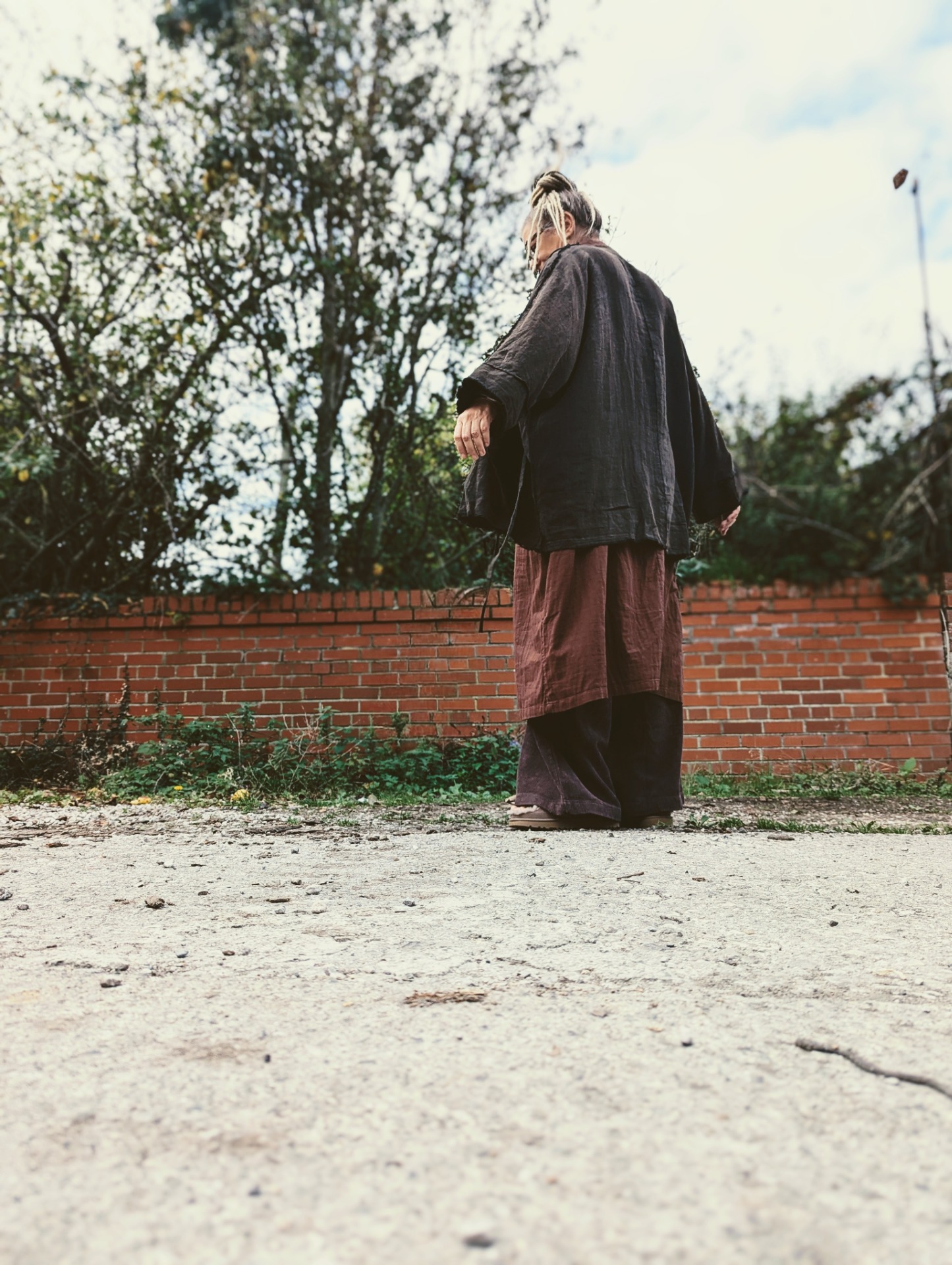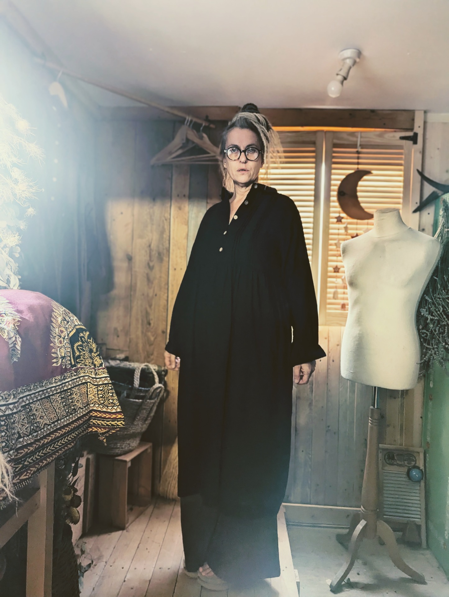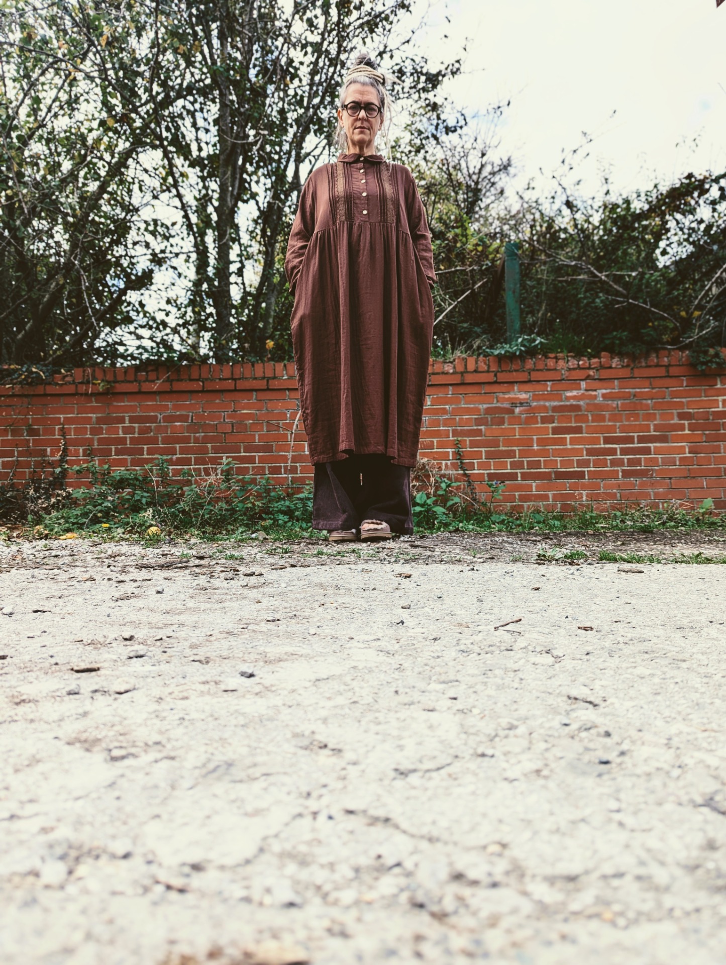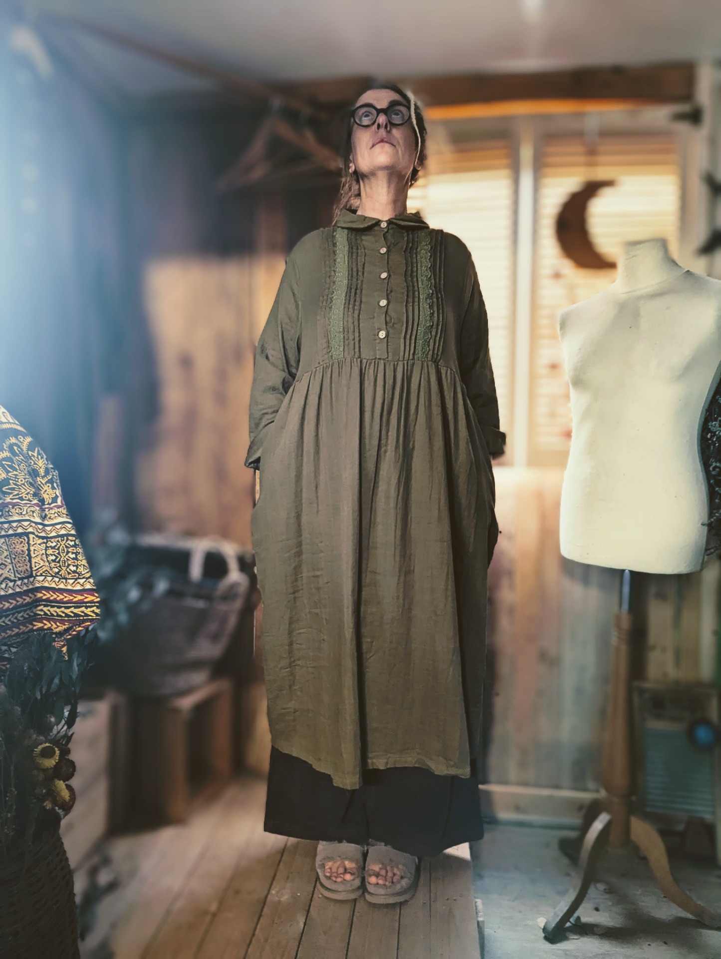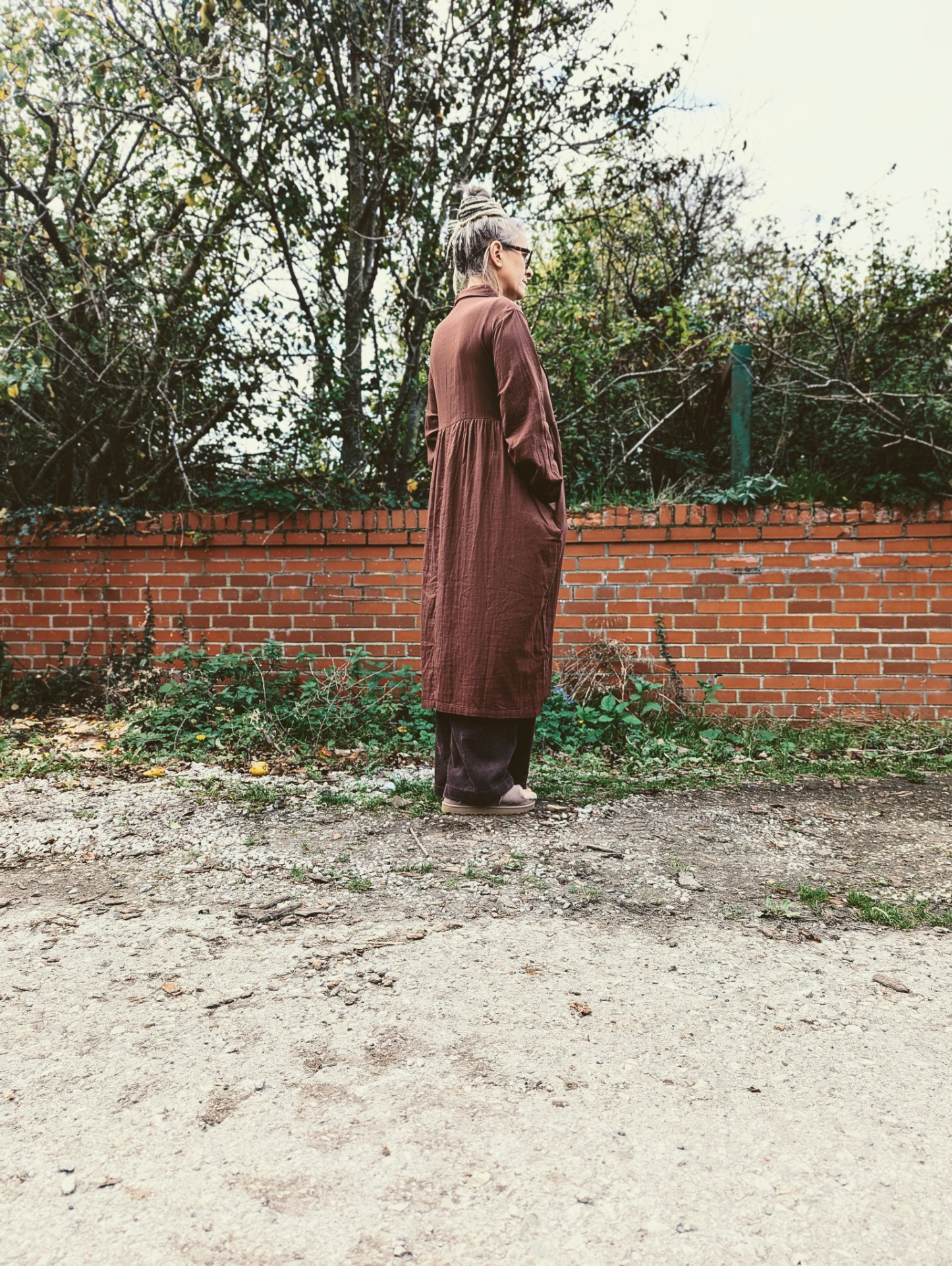 an easy peaceful dress pictured here with the 'corduroy big pants' and the 'samue' wrap jacket.