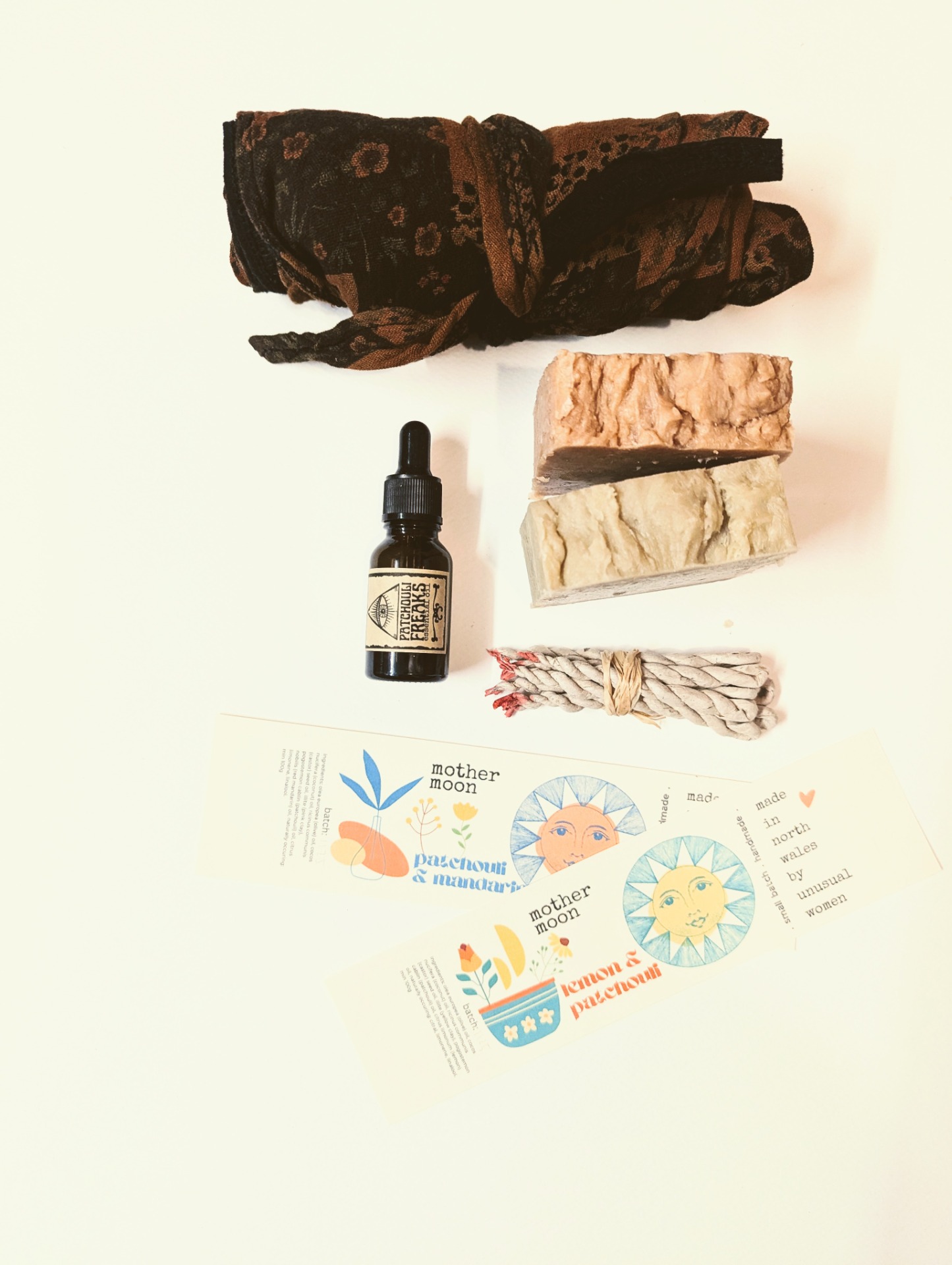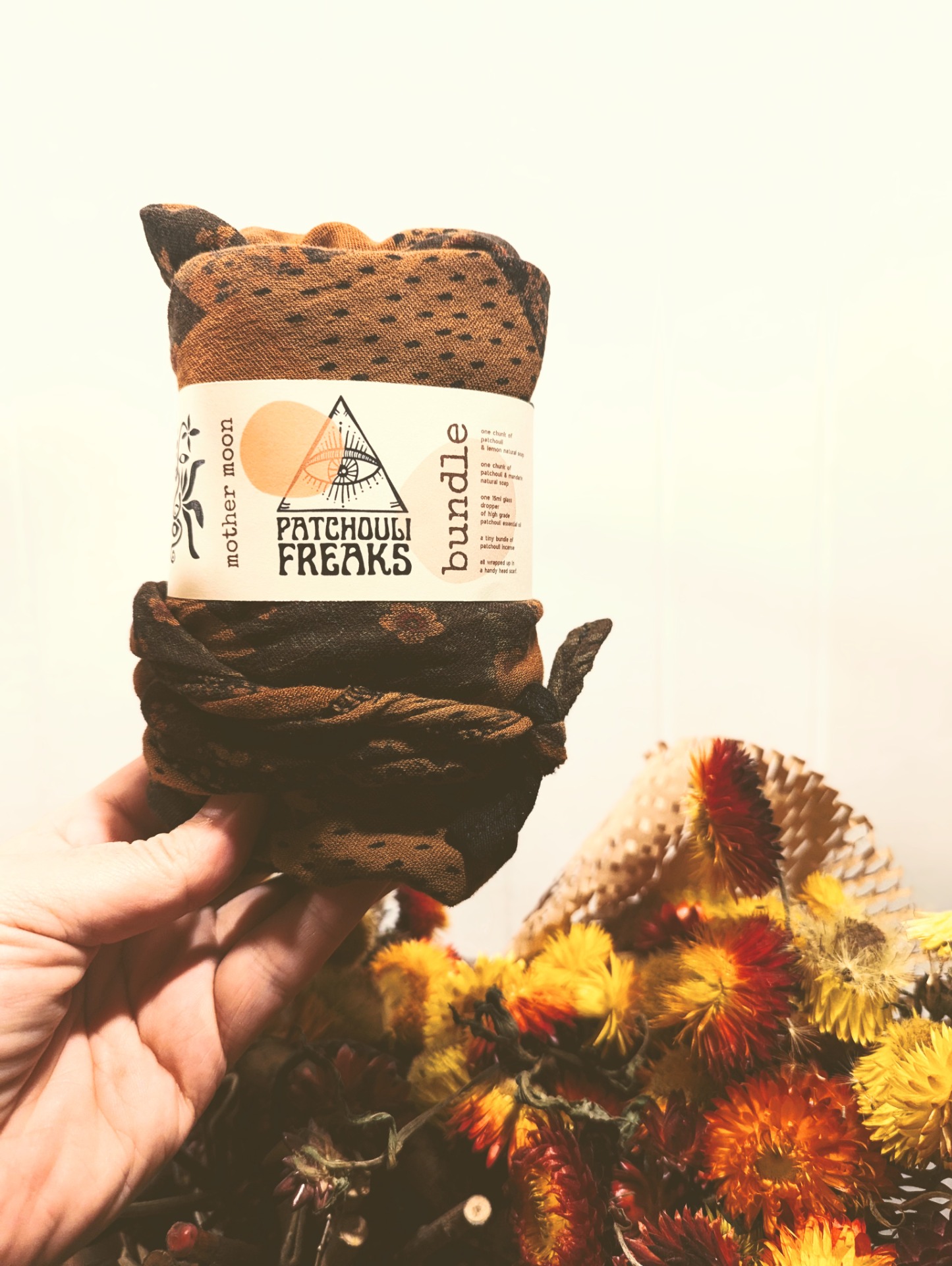 AND its all wrapped up in a handy brown cotton scarf suitable for heads and necks